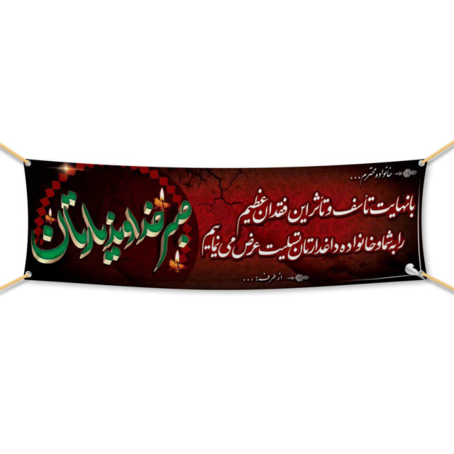 ابعاد بنرهای تسلیت: ۲۰۰×۶۵ سانتیمتر – ۲۵۰×۸۰ سانتیمتر  – 300×90 سانتیمتر