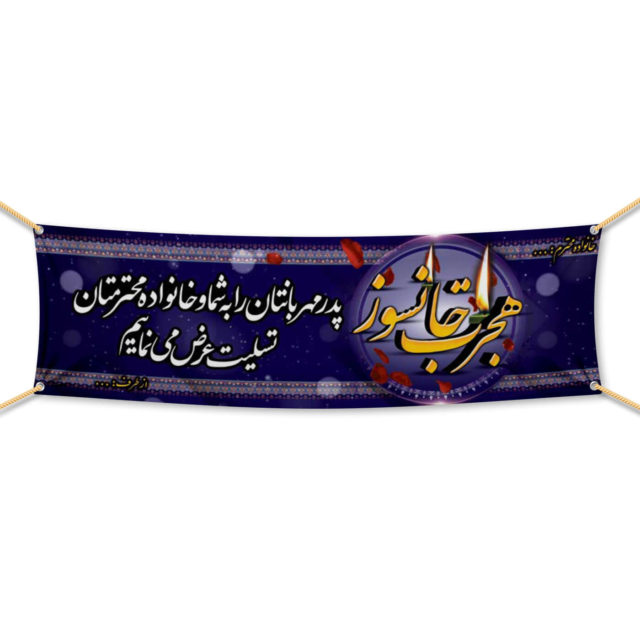 ابعاد بنرهای تسلیت: ۲۰۰×۶۵ سانتیمتر – ۲۵۰×۸۰ سانتیمتر  – 300×90 سانتیمتر