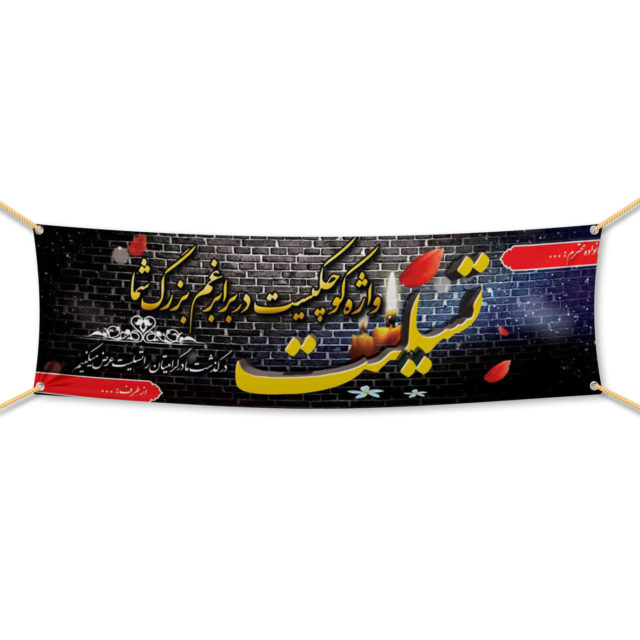 ابعاد بنرهای تسلیت: ۲۰۰×۶۵ سانتیمتر – ۲۵۰×۸۰ سانتیمتر  – 300×90 سانتیمتر