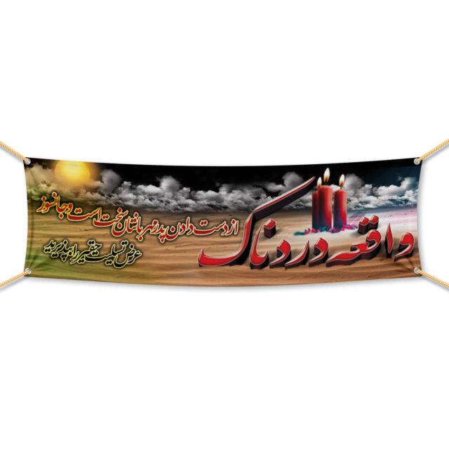 ابعاد بنرهای تسلیت: ۲۰۰×۶۵ سانتیمتر – ۲۵۰×۸۰ سانتیمتر  – 300×90 سانتیمتر
