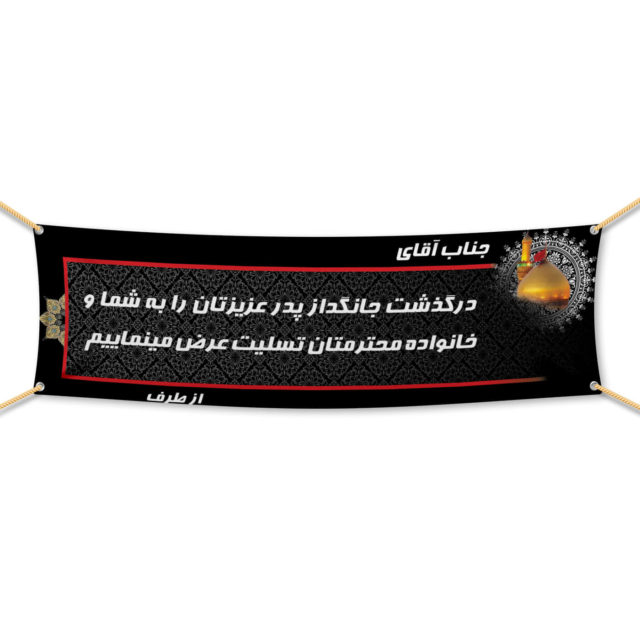 ابعاد بنرهای تسلیت: ۲۰۰×۶۵ سانتیمتر – ۲۵۰×۸۰ سانتیمتر  – 300×90 سانتیمتر