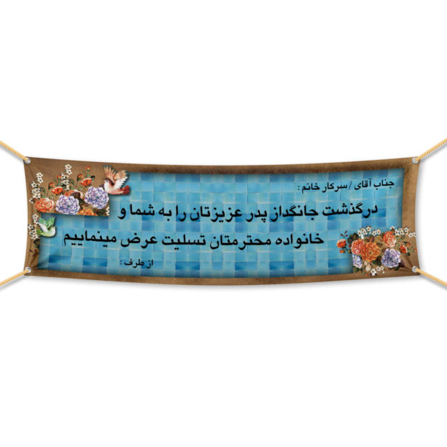 ابعاد بنرهای تسلیت: ۲۰۰×۶۵ سانتیمتر – ۲۵۰×۸۰ سانتیمتر  – 300×90 سانتیمتر