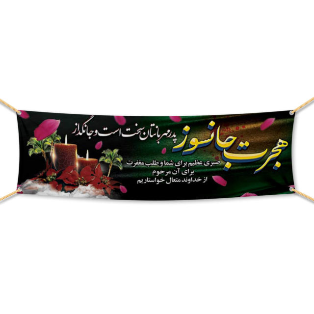 ابعاد بنرهای تسلیت: ۲۰۰×۶۵ سانتیمتر – ۲۵۰×۸۰ سانتیمتر  – 300×90 سانتیمتر