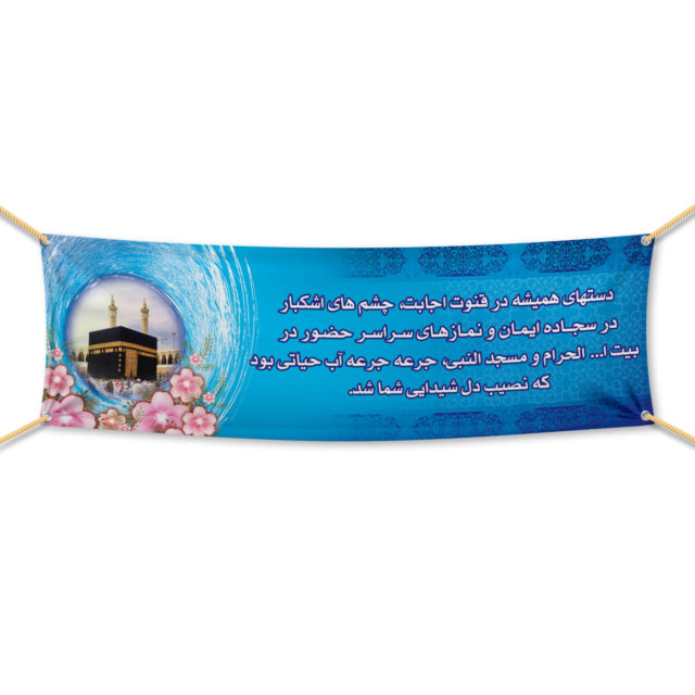 ابعاد بنرهای مکه ای حجاج: ۲۰۰×۶۵ سانتیمتر – ۲۵۰×۸۰ سانتیمتر  – 300×90 سانتیمتر