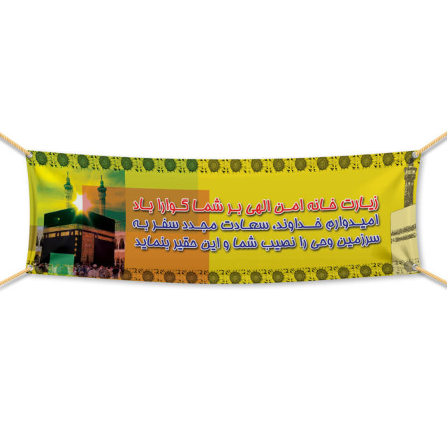 ابعاد بنرهای مکه ای حجاج: ۲۰۰×۶۵ سانتیمتر – ۲۵۰×۸۰ سانتیمتر  – 300×90 سانتیمتر