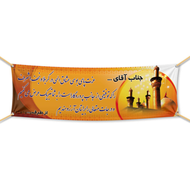 ابعاد بنرهای کربلایی: ۲۰۰×۶۵ سانتیمتر – ۲۵۰×۸۰ سانتیمتر – 300×90 سانتیمتر