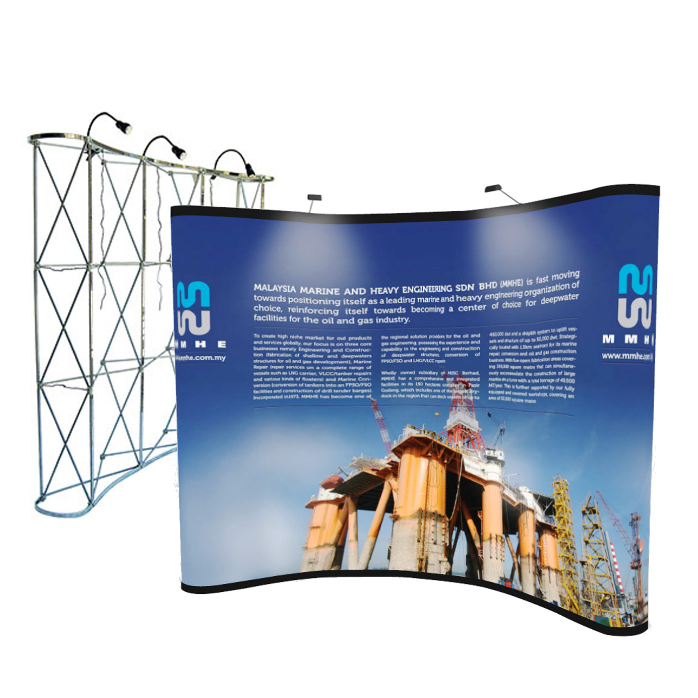 پاپ آپ نمایشگاهی فنری یکی از ملزومات نمایشگاهی است و در دو مدل تخت و منحنی به فروش می رسد . انتخاب این که استند پاپ آپ فنری شما تخت باشد یا منحنی، کاملا سلیقه ای و بستگی به فضا و طراحی غرفه شما دارد.